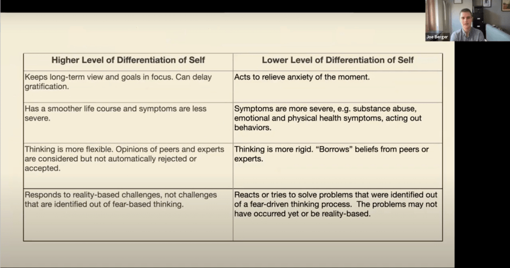 I have given presentations on topics related to Bowen Family Systems Theory.